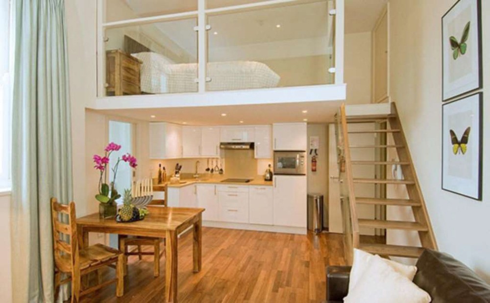 Diện tích cũng vừa đủ và tiết kiệm thời gian dọn dẹp cũng như là cách trang trí cho căn nhà của mình. Phòng khách sẽ có không giản mở cùng phòng ăn và phòng bếp. Cuối nhà sẽ là một nhà vệ sinh, bạn cũng có thể sử dụng gác lửng để làm phòng ngủ. Với những mẫu diện tích nhỏ thì bạn cũng có thể chọn những nội thất với những gam màu tối. Những sự kết hợp về màu sắc hợp lý, căn nhà sẽ trở nên ấn tượng và đẹp hơn.